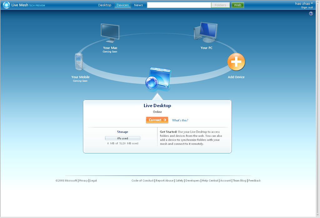 挺喜欢live wave2界面在IE6下的显示效果,极度不喜欢其在IE7下的外观,给个Live Mesh在IE6下的截图: