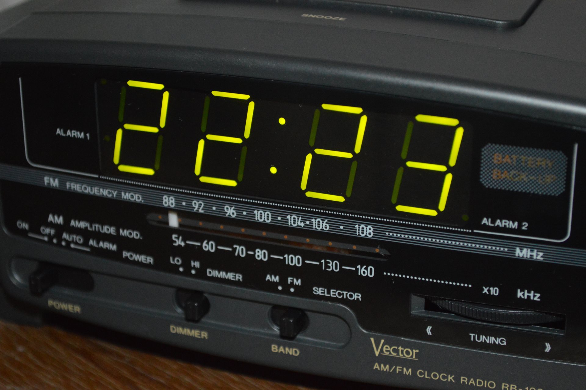 这几天迷上大数字LED时钟,在淘宝上搜到了Vector RB-100钟控收音机,但看到买的人不多,看起来很不错,挺大的数字LED显示,当房间里的夜光时钟不错。
