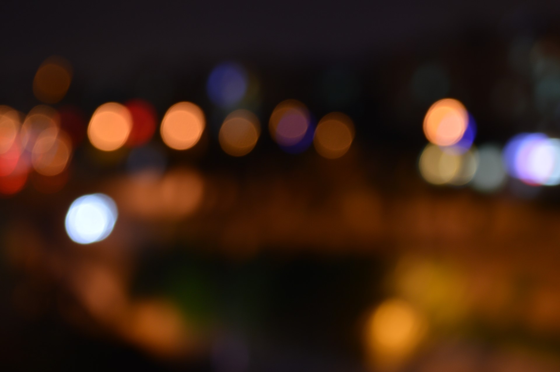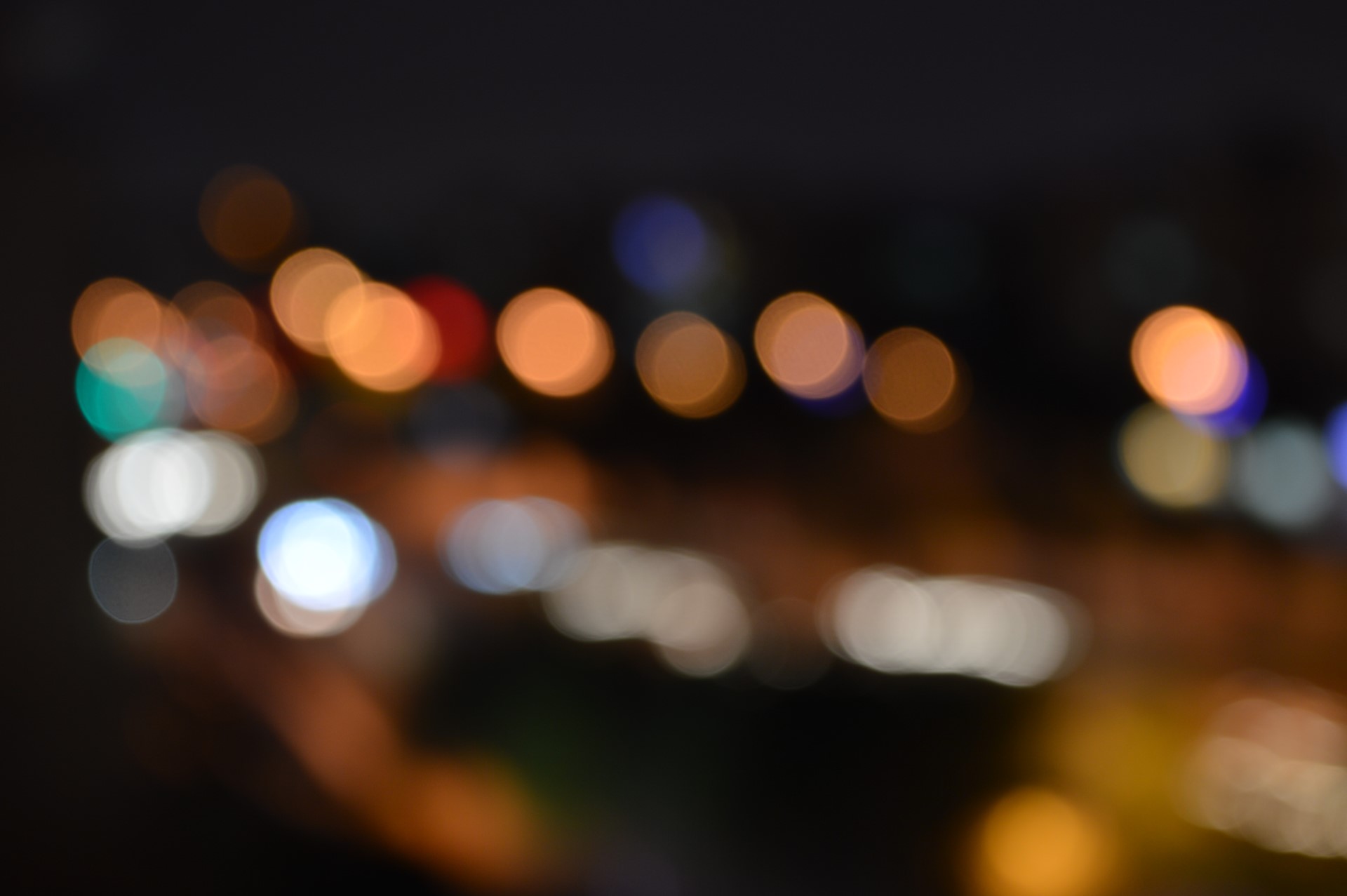 夜晚的街道,手动对焦把焦点调糊,随手按了几下,红绿灯,车灯,窗口的灯都朦胧了一片……